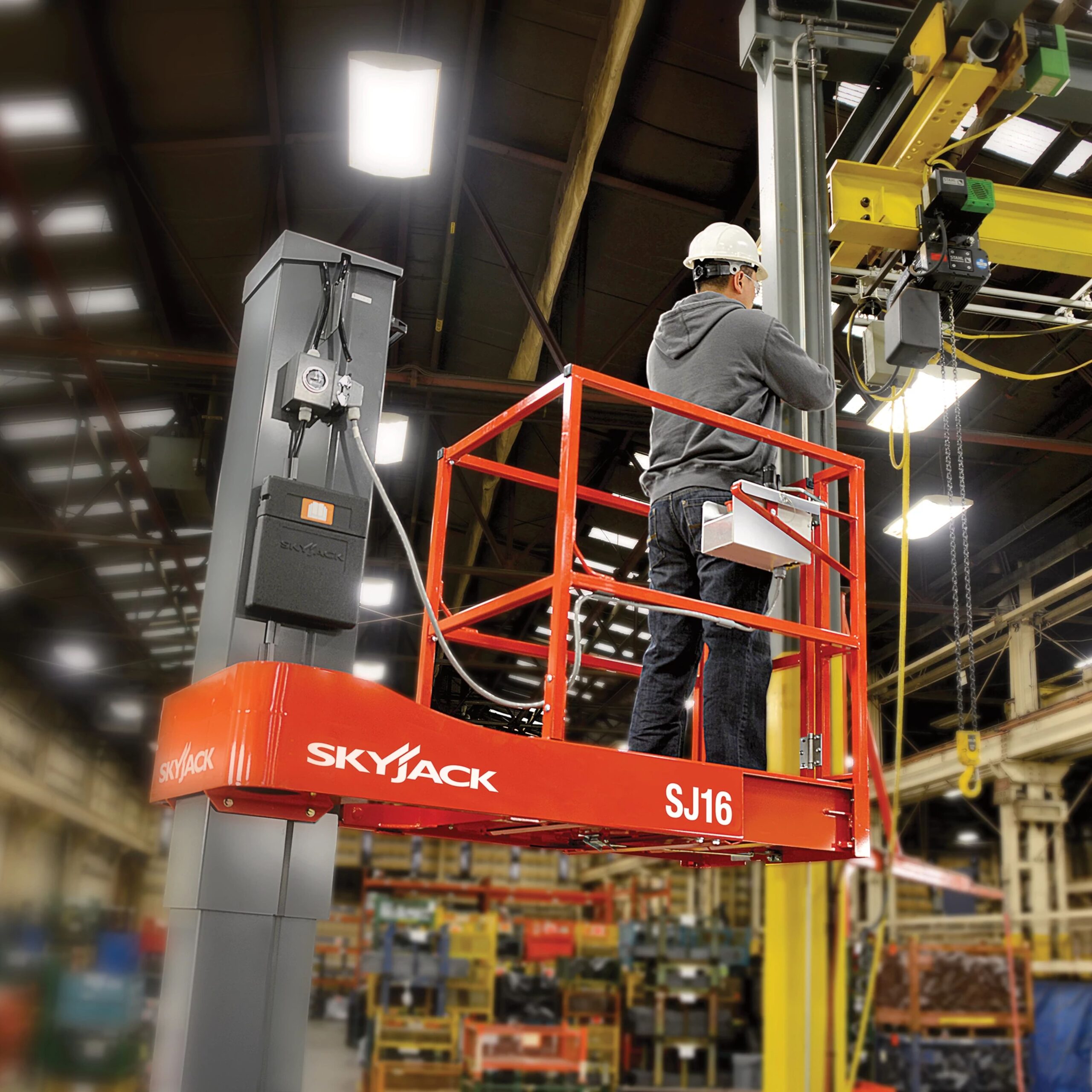 This 15′ self-propelled man lift rental makes quick work of elevated maintenance, painting and lighting work. These personnel lifts are more efficient tools than ladders as they eliminate much of the risk and time associated with traditional ladders. This electric vertical lift is highly maneuverable, easily operated and driven from the platform. Brands include Skyjack, JLG, Genie and more.