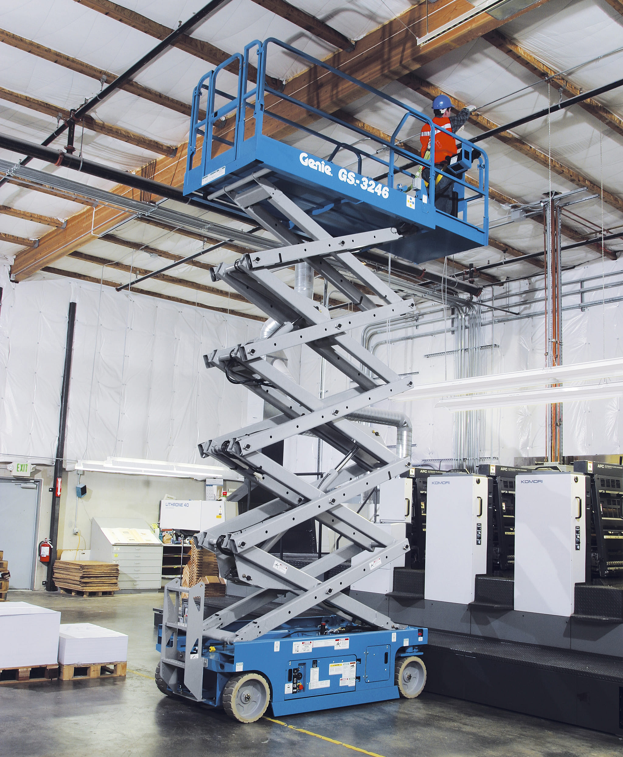 Rent this durable scissor lift from Kwader Rentals for excellent working space and lifting capacity. This versatile electric-powered scissor lift has a maximum platform height of 20′ to 22′ and is ideal for use for construction, maintenance and warehouse applications. We carry trusted manufacturers such as Genie and more to ensure you receive quality equipment for your next project.