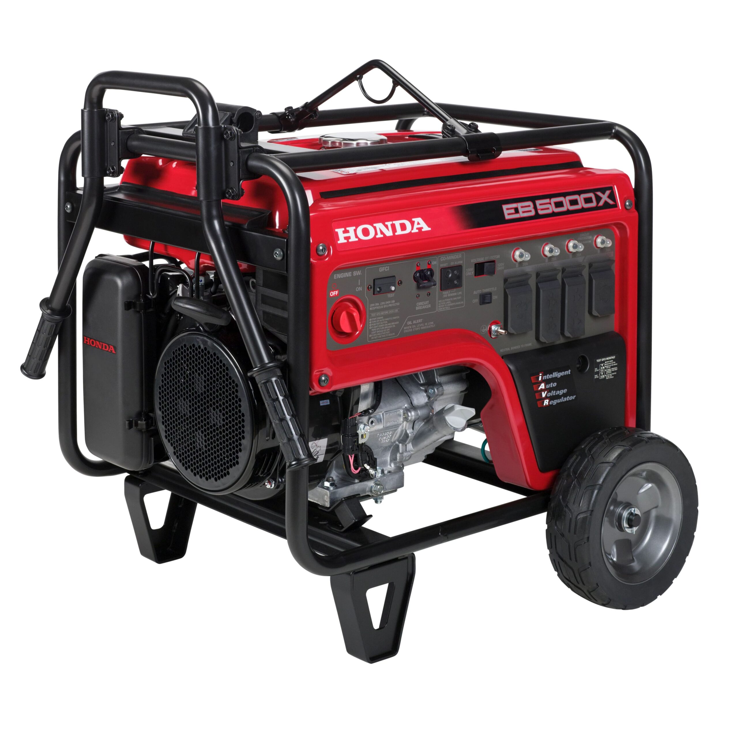 Designed for construction and other commercial applications, this single-phase gas generator delivers 5,000 to 5,400 watts for powering tools and equipment. It runs at 65 to 73 decibels depending on model. With a fuel capacity ranging from 5.5 to 6.2 gallons, this gas generator can run from 6.2 to 7.1 hours at its rated load. Manufacturers include Honda, Mi-T-M, DeWalt and other trusted brands.