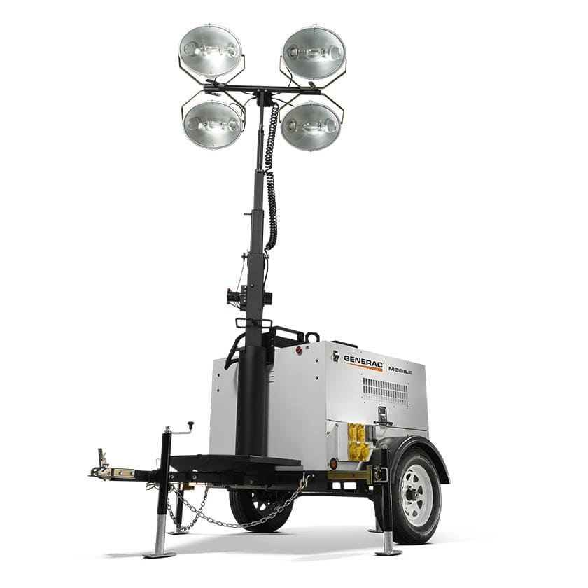 Kwader Rentals’ towable lighting towers provide bright light and power to your jobsite. Our diesel-fueled light tower’s generator has rugged enclosures and off-road capability. You can set up and operate the tower easily. This lighting tower’s powerful halide fixtures provide maximum illumination. The attached 16-20kW generator powers tools and electronics so you can work smarter.